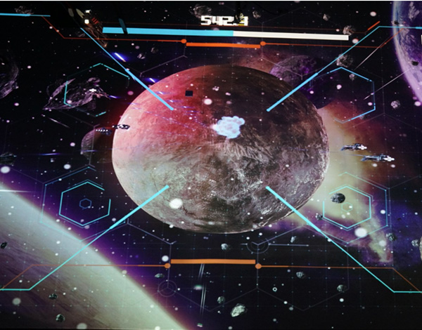 《墻力星戰(zhàn)》的創(chuàng)作概念靈感源自“保護(hù)地球”。借助數(shù)字媒體搭建出地球、宇宙及不明外來飛行物的情境,體驗(yàn)者可以運(yùn)用球這個(gè)武器,擊落宇宙中不明敵機(jī),保護(hù)我們賴以生存的地球家園,號(hào)召大家樹立熱愛地球、保護(hù)地球的思維意識(shí),同時(shí)也要積極探索學(xué)習(xí)地球和宇宙的相關(guān)知識(shí),建立知識(shí)自信,保護(hù)地球家園。