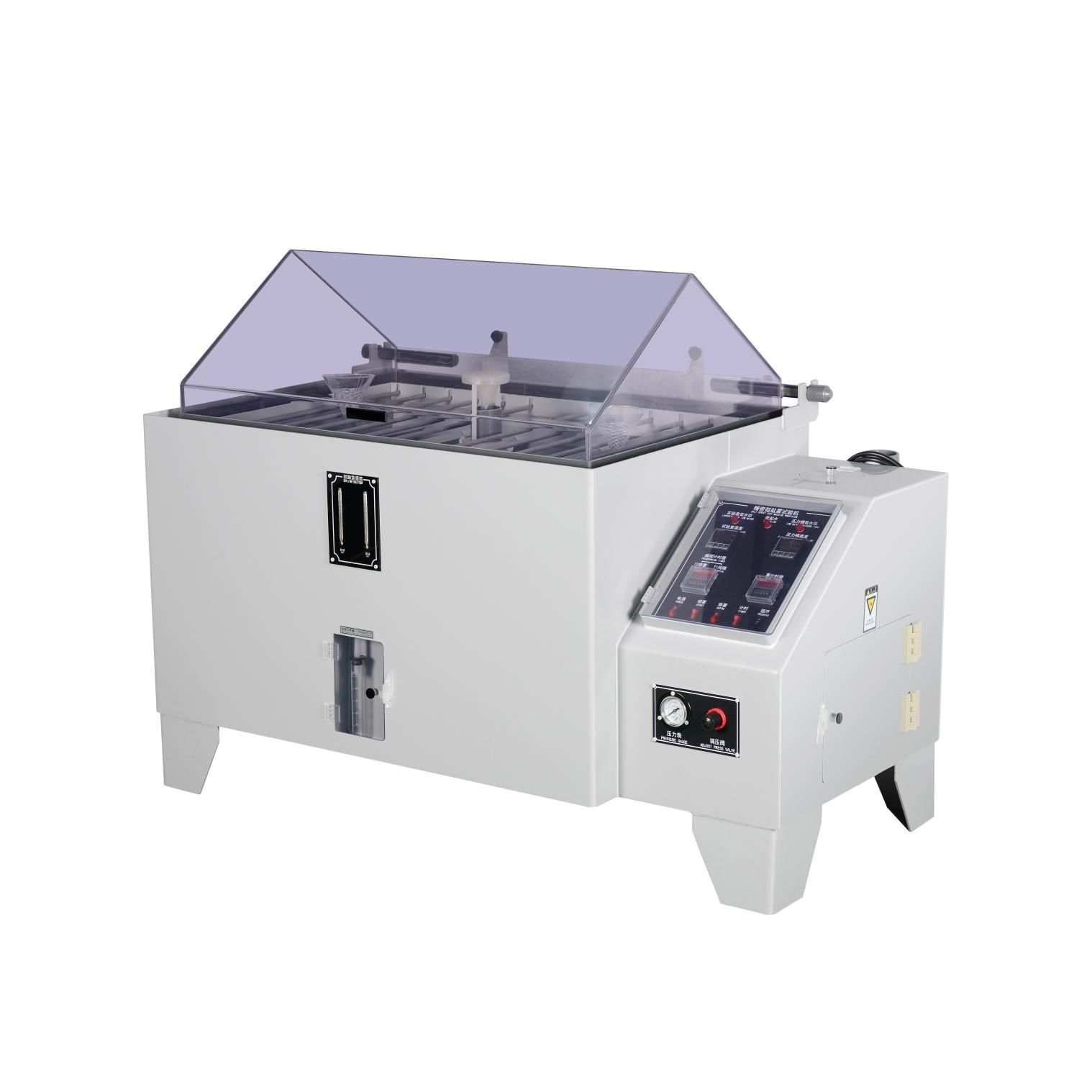 維持試驗溫度鹽霧試驗標準要求箱內溫度穩定在 35℃,加熱系統通過溫控器精準控溫,確保鹽霧在該溫度下的腐蝕強度穩定。溫度過高會加速溶液蒸發、破壞鹽霧粒徑;溫度過低則無法形成符合標準的鹽霧,導致試驗結果無效。